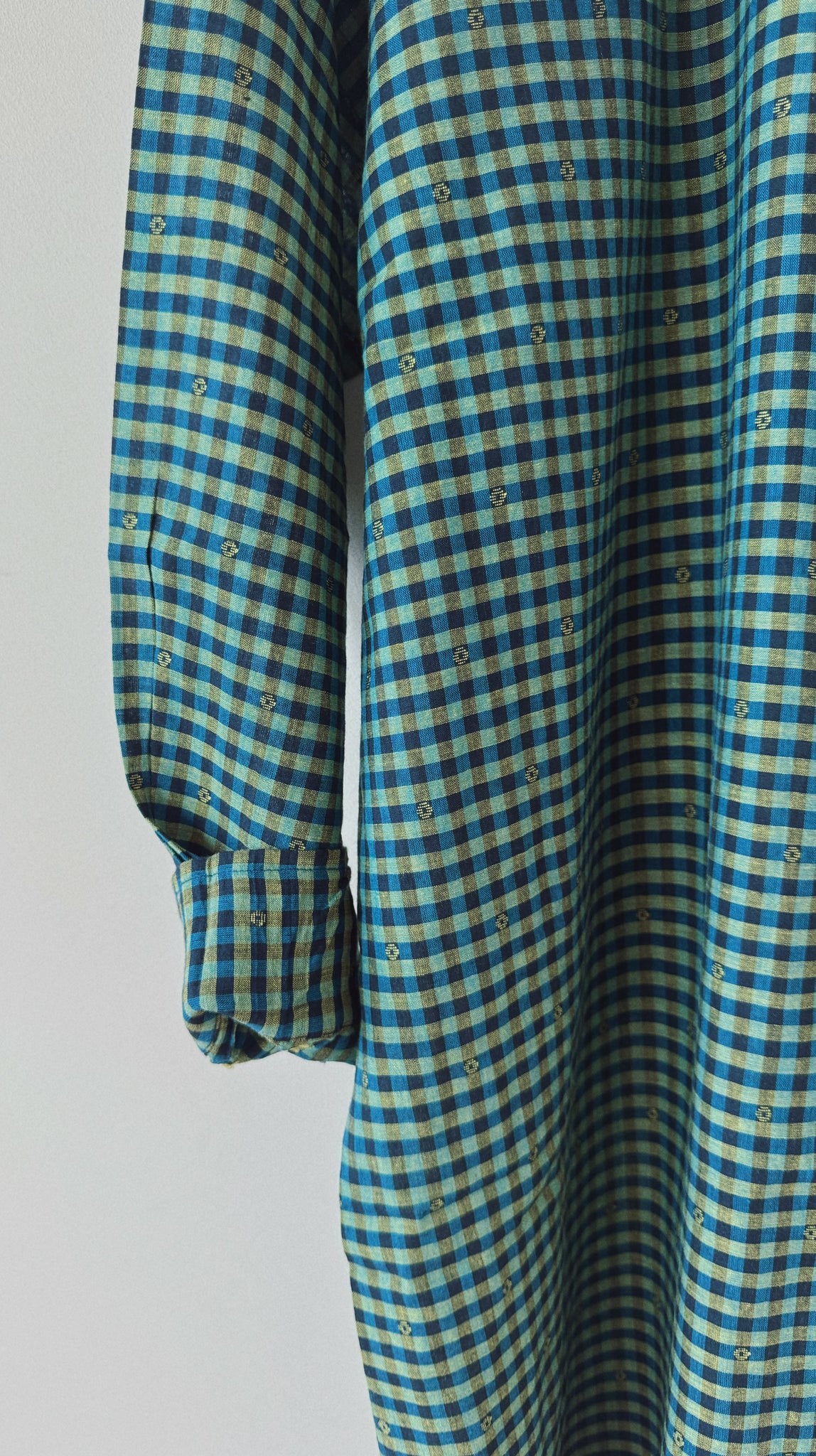 Button down collared midi dress in hand loomed cotton.